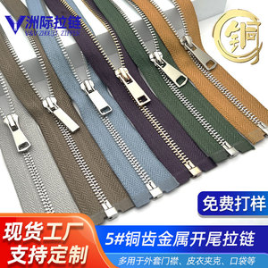 カスタム5番単開尾掛銀メッキ白歯浅金歯銅ファスナー皮衣コートドア襟ポケット金属ファスナー