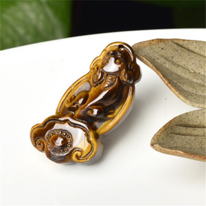 メーカー卸売り金黄色虎眼石如意銭袋ペンダント男女金玉知足常楽ペンダント