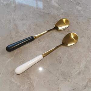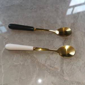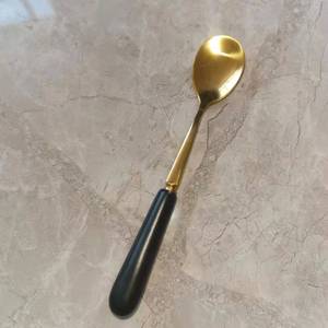陶磁器のスプーンのワックスの光の色の亜光の色の金メッキの小さい金のスプーンのコーヒーのスプーンのマグカップのスプーンの高級なつや消しの黒
