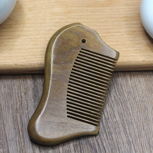 緑檀香木櫛9一12cmバッグ櫛ミニトランペット木櫛細歯太歯小櫛無料彫刻