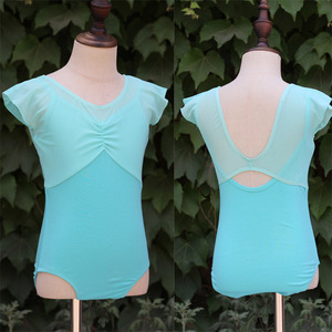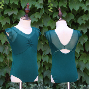 子供のダンスの服の女の宝の夏の半袖は中国の民族のダンスの形の服の空色の演出服を練習します。