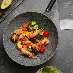 メディカルストーンチタン鍋ノンスティックフライパン家庭用耐性スパチュラ平底中華鍋Douyinホットスタイル