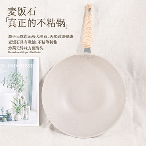 医療石チタンノンスティック中華鍋家庭用電磁調理器平底中華鍋ガスガスストーブユニバーサル中華鍋無煙