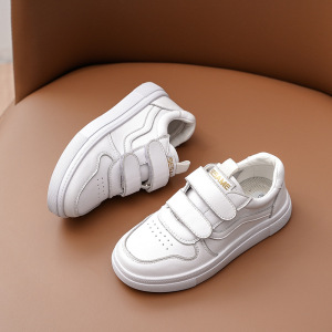 女の子用白いスニーカー 2025年春秋新作 中高学年小学生向け レザーソフトソール おしゃれ 男の子用シューズ