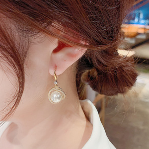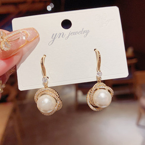 韓国の新型のイヤリングのジルコンは真珠の耳飾りの気質のファッションの耳のフックの工場を巻いて1手の商品の供給源のアクセサリーの卸売りをします。