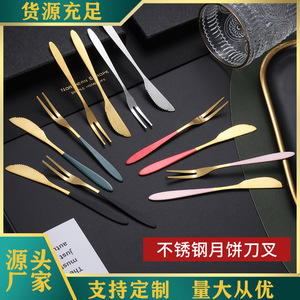 ステンレスフルーツフォークセットデザートケーキ2歯フォークins月餅ナイフフォークネット赤プレゼントセット