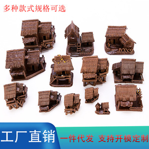水槽の造園装飾岩場風景小さな家茅葺き家竹の家