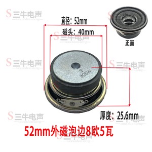 52mm铁内磁18mm磁pu边8欧5瓦喇