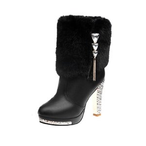 女性靴秋冬の新型欧米のショートブーツのハイヒールの太さと女性靴のドリルはマーティンブーツを飾ります。