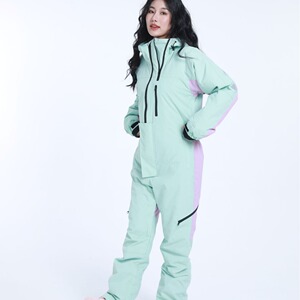 ワンピーススキー服 冬用 オーバーオール カップル用 シングルボード・ダブルボード用 上下セット パープル 男女兼用