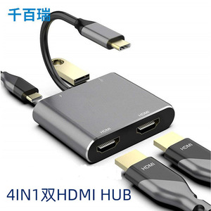 クロスボーダータイプcから4-in-1デュアルhdmi+3.0usb+pd高精細Macbook同一ディスプレイデュアルスクリーンハブコンバータ