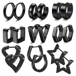 TEMU SHEIN 亚马逊WISH热卖套装异性耳环嘻哈风格四方三角形五角