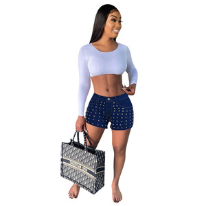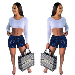 Yd 1045欧米の婦人服アマゾンの人気ファッション釘の毛磨きの辺のデニムのホットパンツのクロスボーダーの婦人服