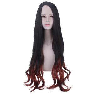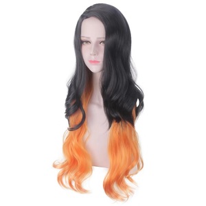 アニメかつらコスプレ鬼滅之刃門豆子cosかつら鬼化グラデーション色花火巻きかつら