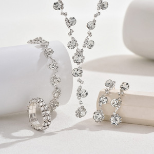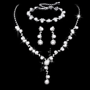 ジュエリーセットの新しいキラキラ光るモザイクは、女性の結婚式用品のアクセサリーのネックレスのイヤリングのブレスレットの3つのセットです