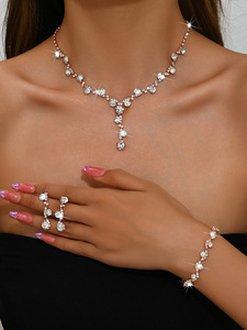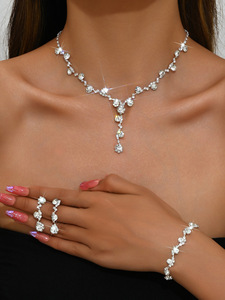 483747+424-2 シルバー ラインストーン ネックレス イヤリング ブレスレット リング