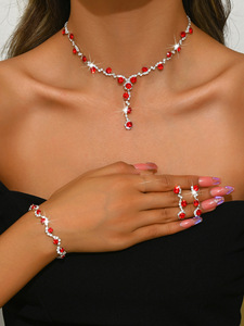 483747 シルバーレッドネックレス+イヤリング+ブレスレットセット