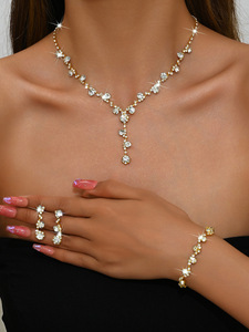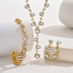 483747+424-2 ゴールド ラインストーン ネックレス イヤリング ブレスレット リング