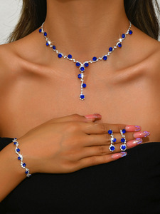 483747+424-2 サファイアブルーネックレス+イヤリング+ブレスレット+リング サファイアブルー