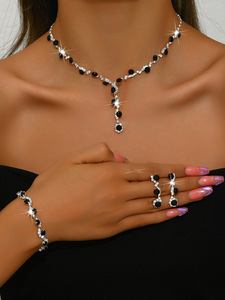 483747+424-2 シルバー ブラック ネックレス + イヤリング + ブレスレット + リング シルバー ブラック