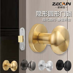 寝室静音亜鉛合金キーレスステルスドアロック家庭用ドア背景壁片面ステルス円形ドアロック