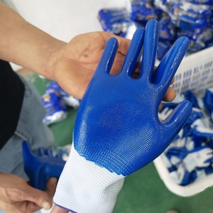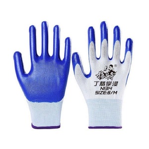 労働保護手袋内装建築用作業手袋ニトリルホワイトヤーン青掛浸糊耐摩耗性タッチパネル包郵便