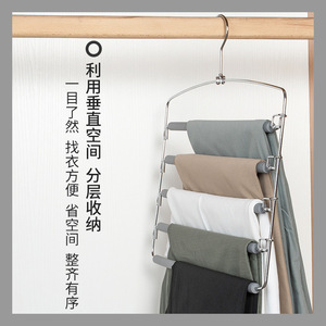 多層マジック収納ズボンラック収納携帯5層服ラック折りたたみ金属ズボン下着収納神器