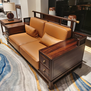 新中国式烏金木皮質ソファセット別荘客間高級黒檀木見本房全屋家具