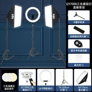 直播セット【QY7000高顕三色リモコンキノコ灯】ソフトボックス2.1Mスタンド