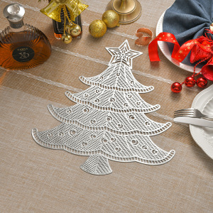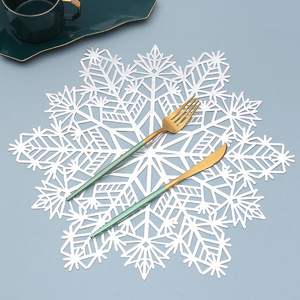 創意的な雪花の食事マットpvcの箔押し銀の透かし彫りの食事マットのクロスボーダーの卸売りの断熱の食事マットpvcの純色の洋食マット