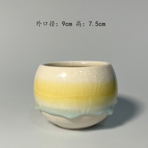 粗い陶器の流れる釉薬の小さな丸い三脚 (ランダムに 1 つ)