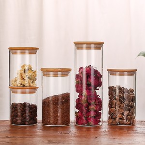 竹の木の蓋のガラスの貯蔵タンクの密封缶を供給して瓶の調味料の缶のお茶の缶の乾燥した果物の缶のガラス瓶を収納します。