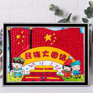56民族の団結と愛国心を表現する手作りボタンステッカーDIY素材パック、幼稚園・小学生向け環境創造装飾画