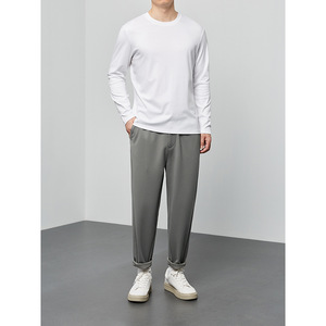 モックマック 50枚 220g 長繊維綿 液体アンモニア 長袖Tシャツ メンズ 春 無地 ラウンドネック メンズ ボトムスシャツ 75000