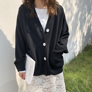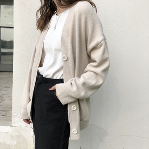 春と秋の新型カーディガンの純色のポケットの長袖のニットのコートのセーターの女性の怠惰な風のゆったりしている洋風の学生は外で掛けます。