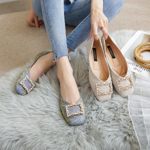 555-12 Huidong Yixin ダーファンクルスノーフレークラインストーンプリーツサテン浅い口スクエアトゥメタルシングルシューズフラットシューズ