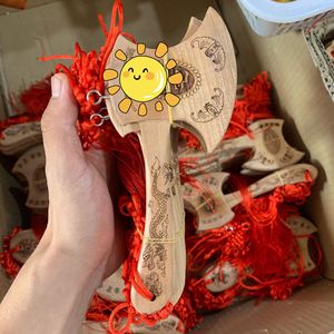 桃木剣原色一体剣彫刻桃木斧ストラップトランペット宝剣子供玩具工芸桃木剣卸売り