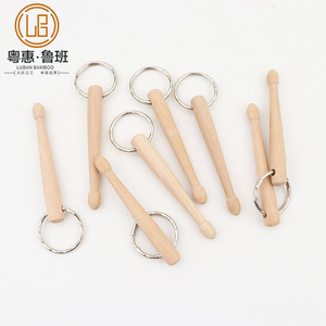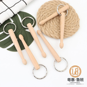 木製ドラムスティックキーホルダー、欧米で人気のバックパック飾り、木製スティックキーリング、木製キーホルダー