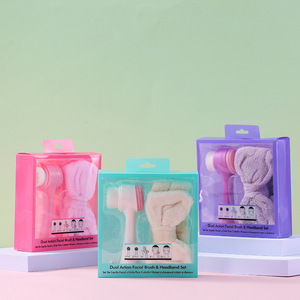 両面洗顔ブラシヘアバンドセット黒頭清潔洗顔ブラシサンゴベルベット蝶ネクタイ