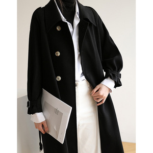現品の春秋韓国版のゆったりした流行の風衣の女性の中で長いタイプの秋は膝の大気のファッションの気質のコートの春を過ぎます。