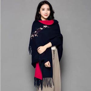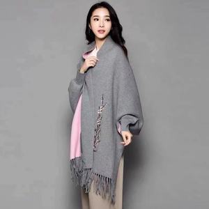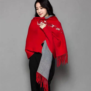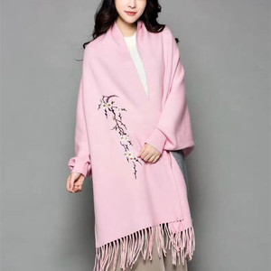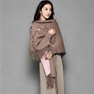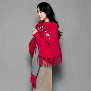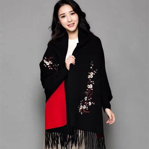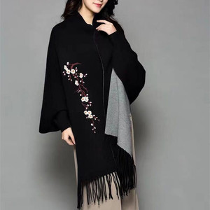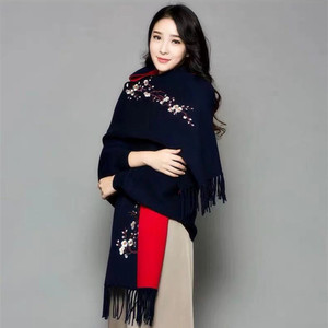 ニットのチャイナドレスの袖付きエアコンのストールのコートの女性の夏の刺繍の梅の花のフリンジスカーフの両用の厚いマント