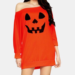 ヨーロッパ駅wish起爆女装カボチャプリント長袖ハロウィーンtシャツ上着