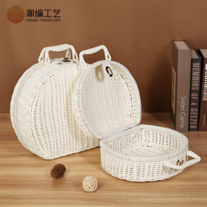 新品ラウンド籐編み収納喜茶月餅箱ギフト包装お土産レトロ編み籐編みスーツケース