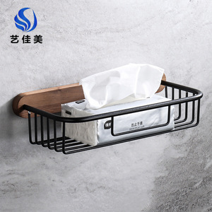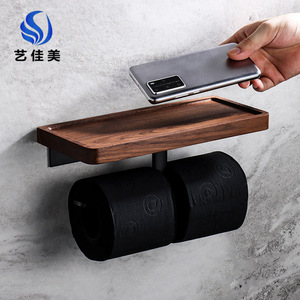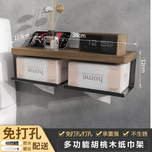 北欧胡桃木ティッシュ棚-hタイプ黒 (穴開け無釘二重用)