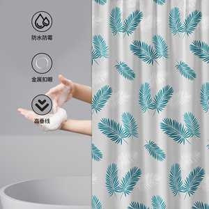 卸売りpevaシャワーカーテン緑の羽防水防かび浴室カーテン厚いトイレカーテンシャワー遮断カーテン