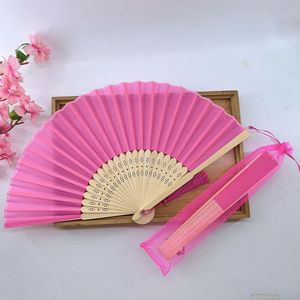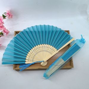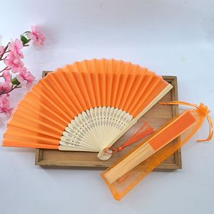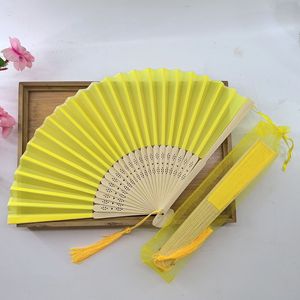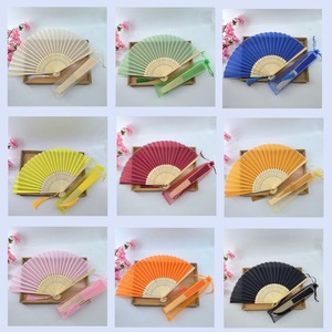 21cm白扇子欧根紗袋流蘇純色結婚式布扇竹骨シルク布面印字可能
