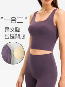 締千の新型胸パッド付きU型美背ヨガベスト肌裸感スポーツ下着女性ブラ欧米DW120