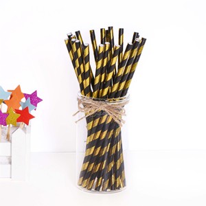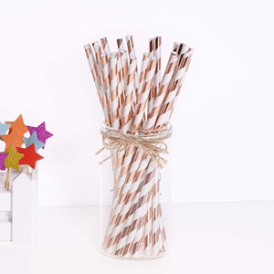 メーカー直販箔押しストローピンクブルー五角星使い捨てストライプ紙ストロー環境保護分解パーティー