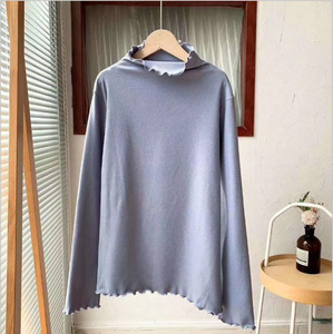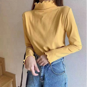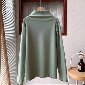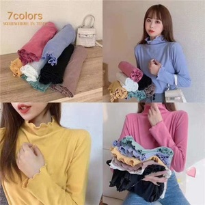 子猫日記 秋冬 ハーフタートルネック フリル付き レディース ドイツ製ベルベット素材 多用途 カジュアル ニットインナー 女性らしい妖精風
