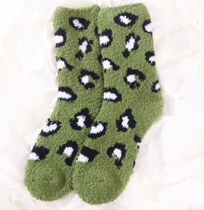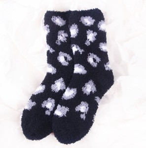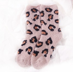 新しいクロスボーダータオルソックス、女性用冬用コーラルベルベット保温睡眠ソックス、厚手の半ベルベットヒョウ柄ソックス、ミッドカーフソックス
